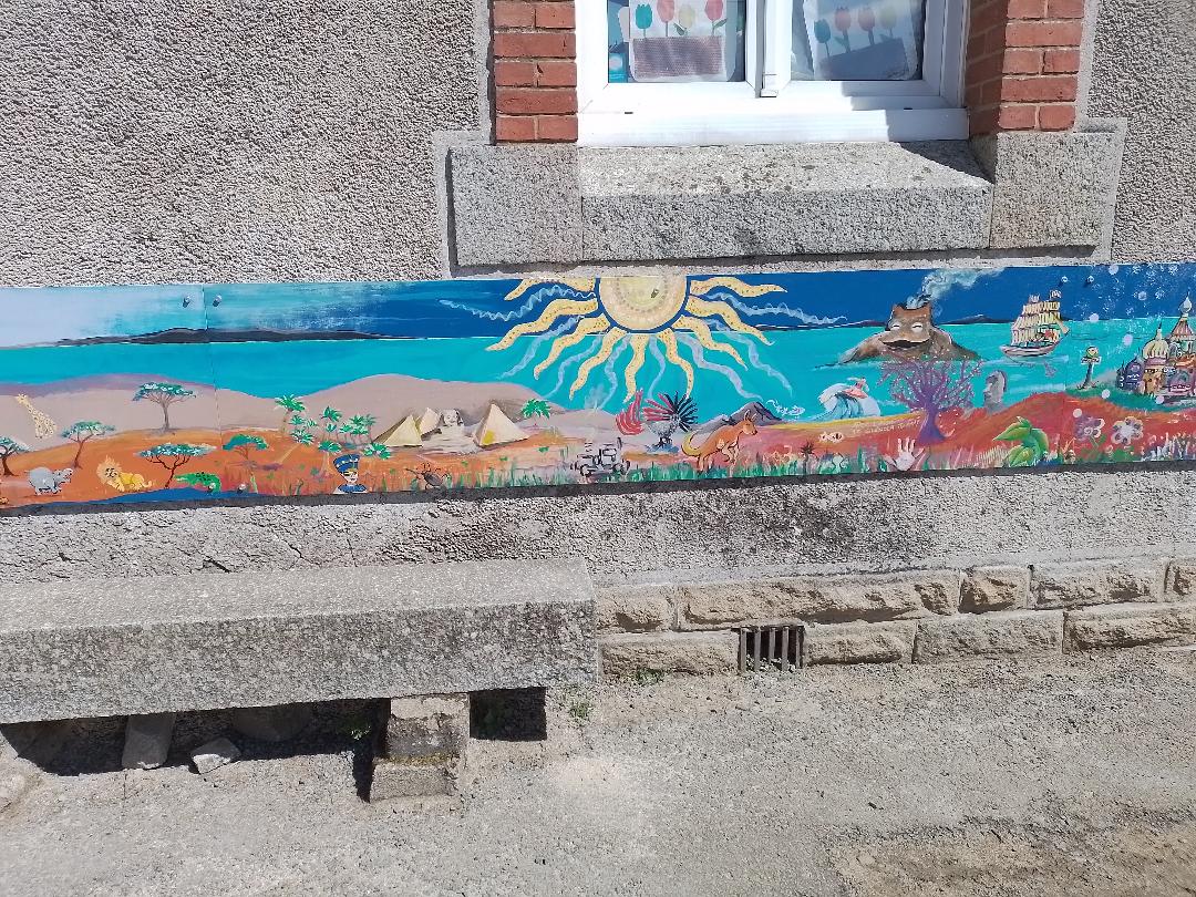 Nous avons bien aimé peindre la fresque, dessiné des villes, des personnes, des animaux…