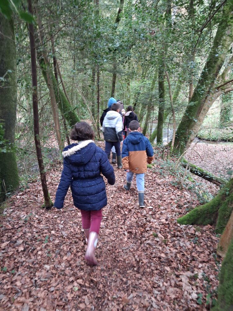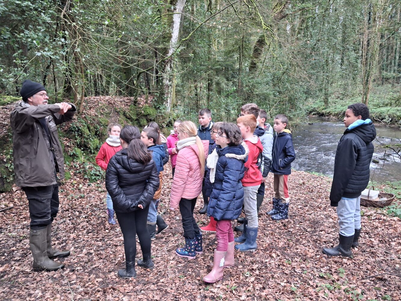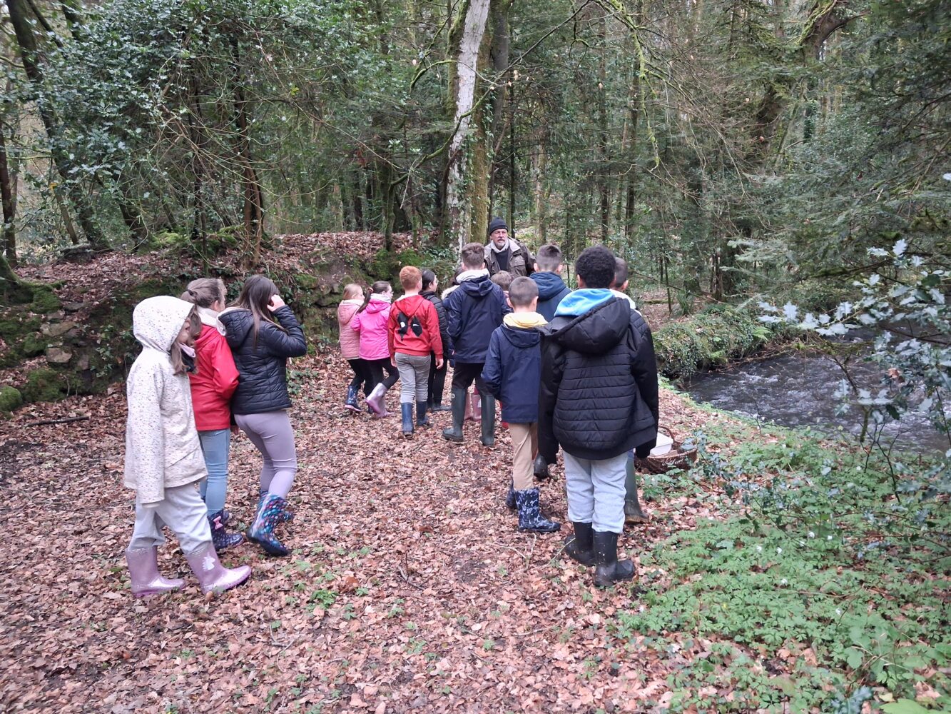 Aujourd’hui, on a été au Palacret. On est sorti du car pour marcher jusqu’à une salle où on a posé notre sac à pique-nique. Après on est allé voir le Jaudy : une rivière. Après, on a marché jusqu’à une source. A côté, il y avait plein de boue, c’était là où les sangliers se plongeaient. On a vu des traces de loutre. Après on a continué la promenade et le monsieur nous a expliqué qu’il y avait des larves de salamandre dans un trou avec de l’eau dedans. On a été au niveau de barrières, et il nous a dit que c’était une ancienne maison, on ne voyait que la cave. Après, il nous a fait sentir les plantes. Ensuite on a continué de marcher pour aller manger le pique-nique. On a fait un dessin, ensuite on a fait une petite récréation.